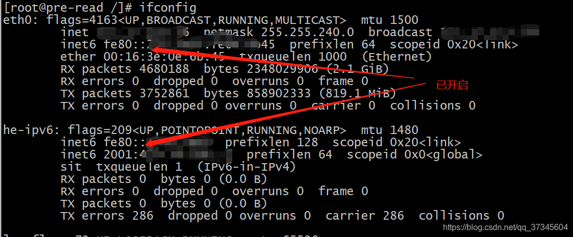 至此,服务器已开启了ipv6,但是服务器只支持ipv6还不行,还要配一个ipv6的隧道