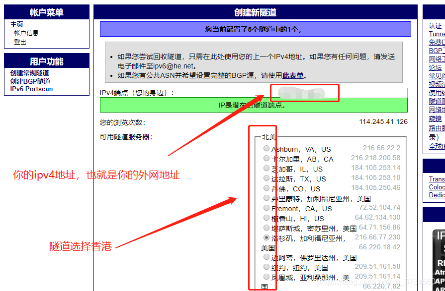 3、填写ipv6通道信息