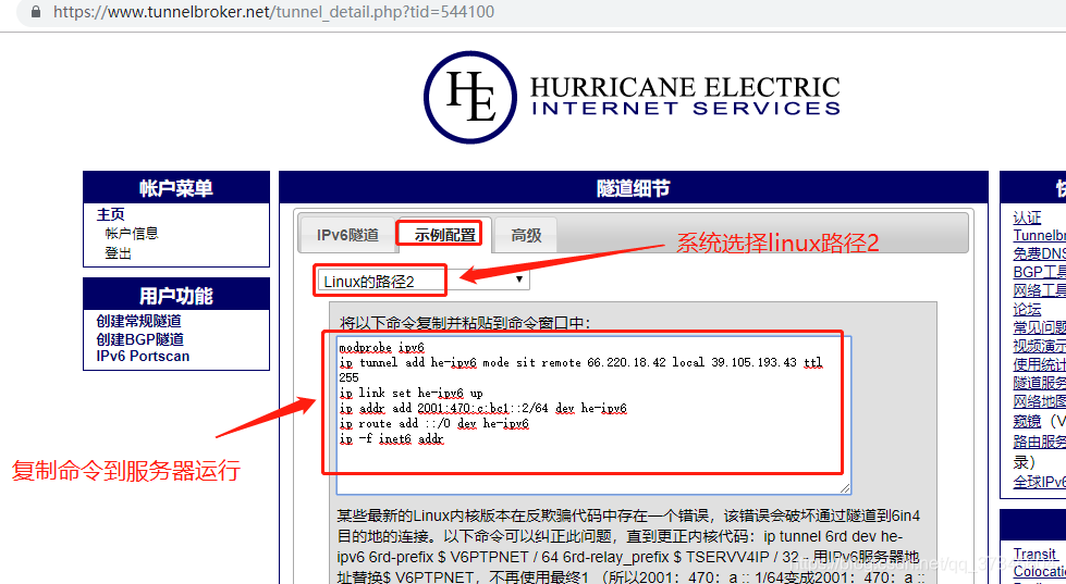 4、设置ipv6通道和路由