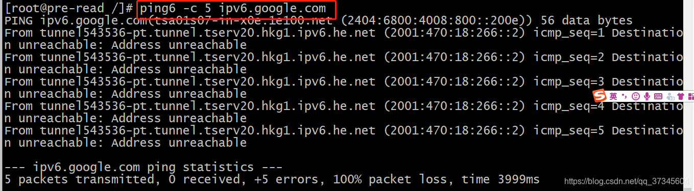 ping6 -c 5 ipv6.google.com